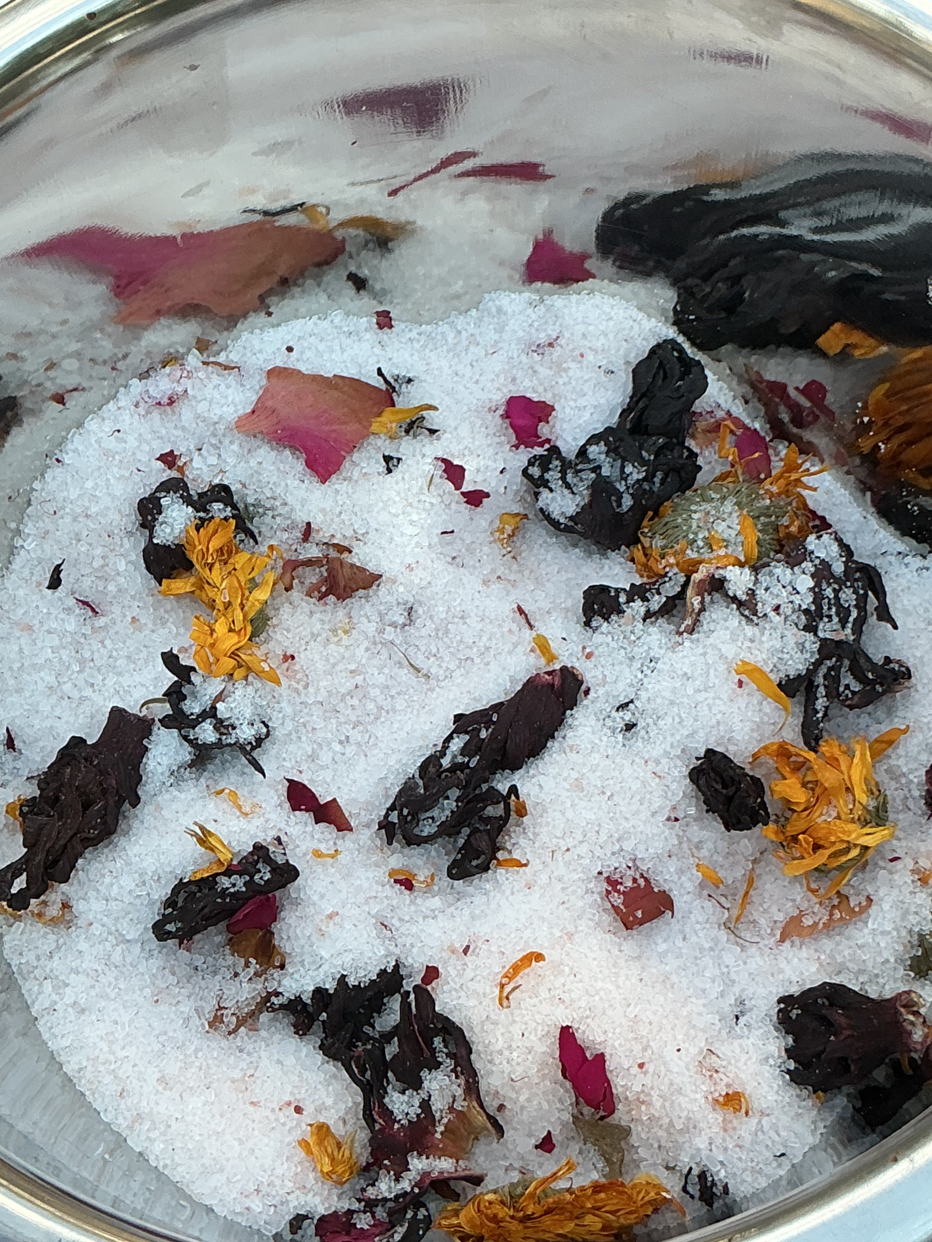 Pour generous handful into warm running water. Allow the salts and botanicals to infuse the bath.
